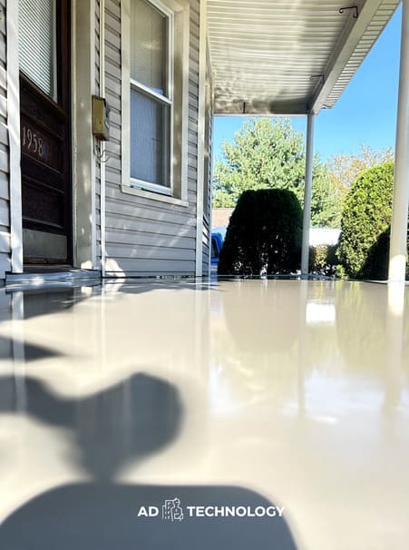 For this outdoor deck transformation, we needed to create a perfectly level surface before applying a decorative microtopping that mimics the appearance of wood planks. Self-leveling compound was essential to correct uneven areas and provide a strong, stable foundation. This ensured the final microtopping adhered properly and achieved the desired aesthetic while maintaining long-term durability.