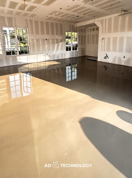 A sealer provides several important benefits for a self-leveling floor. First, it creates a moisture-resistant barrier that helps protect the floor from stains and damage. This prevents liquids from soaking into the surface, which can otherwise lead to discoloration and long-term wear. Additionally, a sealer enhances the floor’s appearance by offering the option to choose between a matte finish or a darker, “wet” concrete look, which can give the floor a more polished and refined appearance. Lastly, a sealed surface makes cleaning much easier, as dust and dirt can be quickly wiped away without penetrating the floor, keeping the surface looking fresh and clean with minimal effort.